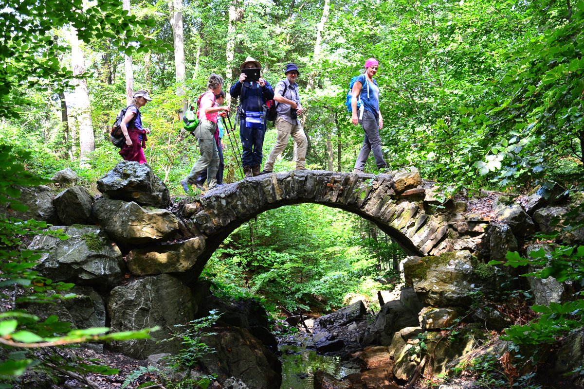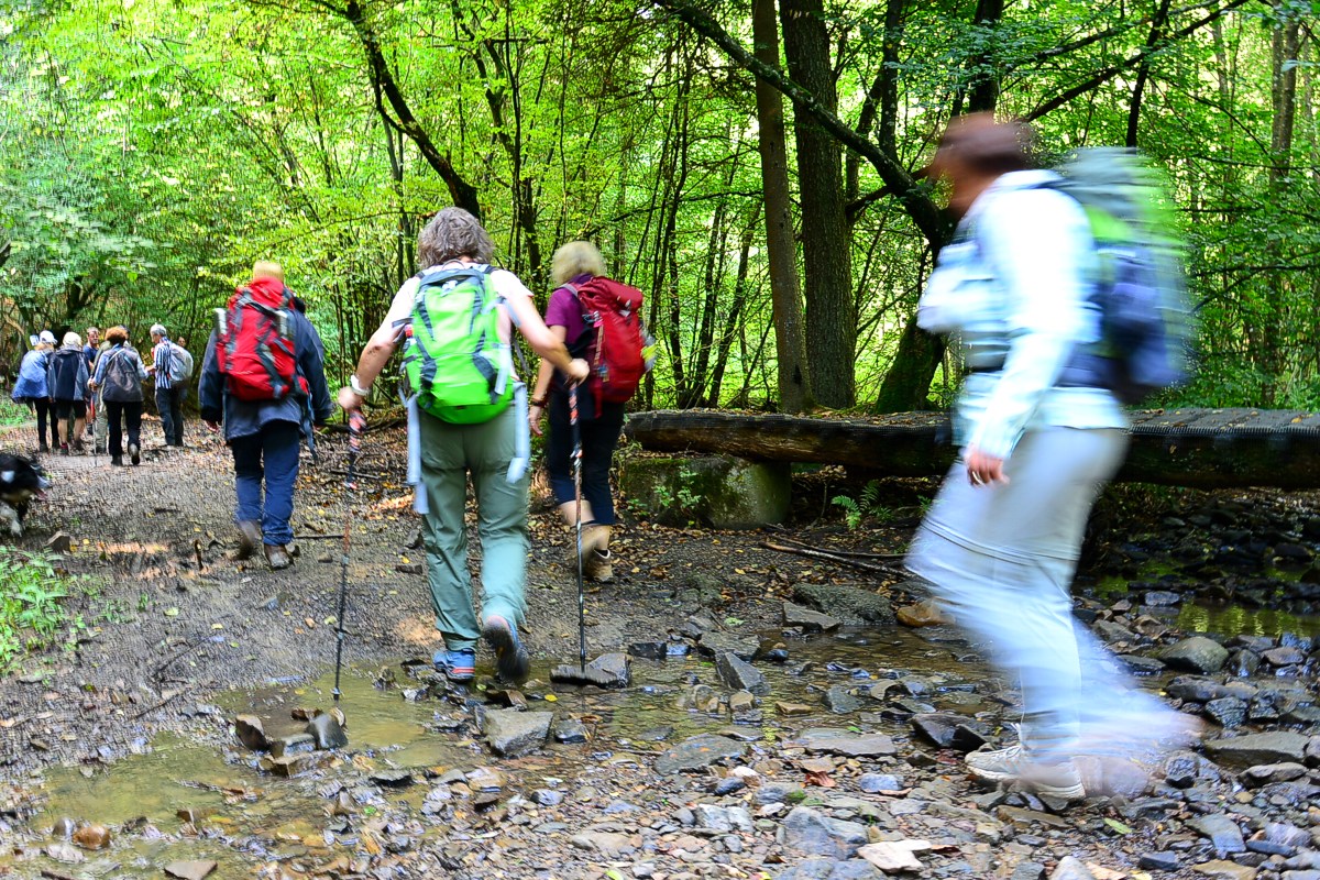 Tag 1: Ich steige aus meinem Traktor und erkenne Belgien nicht mehr (siehe auch Aus dem Tagebuch des Wanderführers – Unvergessliche Tage in Belgien – Tag 1)! Die Sonne scheint und bei 20°C ist das Wetter zum Wandern ideal. Pünktlich um 11:30 Uhr sind alle auf dem Marktplatz von La Roche versammelt und freuen sich auf die kommenden Tage. Zu früh gefreut! Denn vom Start weg geht es gleich bergauf. Bei der „Eingehtour“ sind mehr als 500 Höhenmeter zu bewältigen und der Schweiß fließt in Strömen. Oben angekommen gewähre ich großzügig eine kleine Pause denn ich weiß ja, was als Nächstes kommt. Über geröllige Pfade geht es steil bergab. Gut, dass ich zu Stöcken geraten habe. Ohne Verletzungen gelangt das Rudel „Buntwild“ am Ufer der Ourthe an und auch hier genehmige ich eine Pause. Klar, denn sofort geht es wieder steil bergauf und nach einem Blick auf den tief unter uns im Sonnenlicht glänzenden Fluss wieder ebenso steil abwärts. An einem glasklaren Bach haben Biber ein paar Dämme gebaut und die Stimmung ist wie das Wetter – ausgesprochen heiter. Gemächlich wandern wir an einem kleinen Nebenbach aufwärts und oben angekommen erwartet „Réné“ den Trupp und benässt mit diversen Getränken die ausgetrockneten Kehlen. Nach ein paar unbedeutenden „Zwischenhochs“ geht es mit tollen Ausblicken runter nach La Roche. Etwas später, nach der obligatorischen Dusch- und Umkleidepause lassen alle den schönen Wandertag bei Kirschbier, Frischlingsragout und anderen Leckereien ausklingen. Uff, denke ich, alle(s) gut gelaufen und falle müde aber zufrieden ins gemachte Bett.