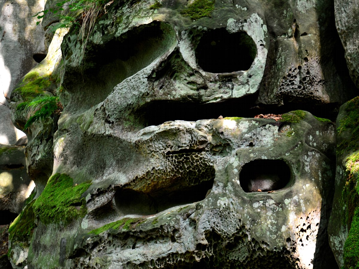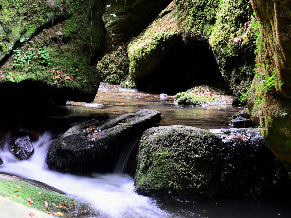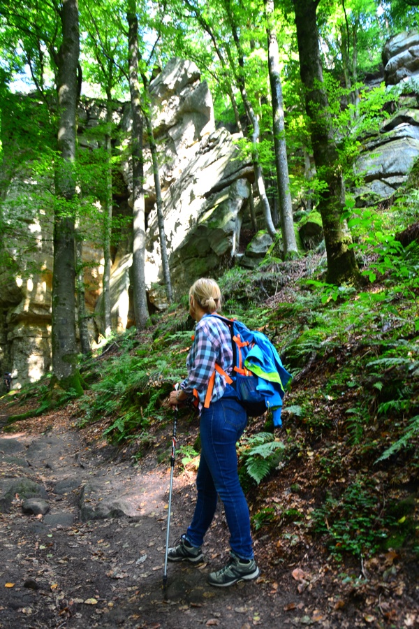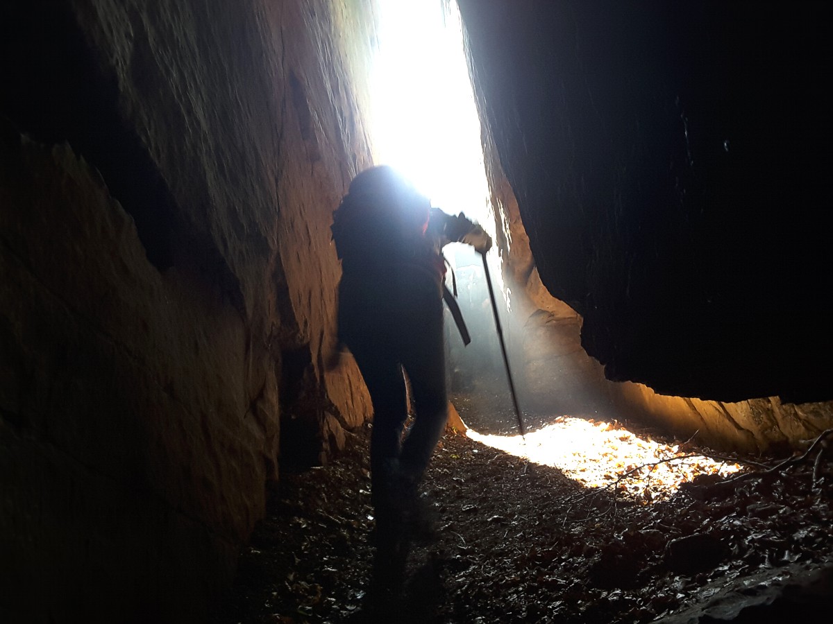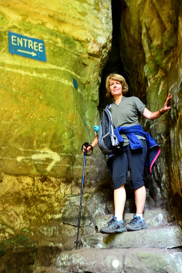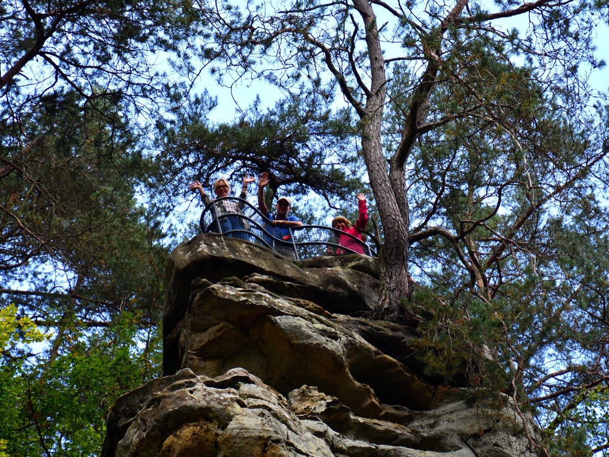 Sonntag: Sonne pur und die Aussicht auf die angekündigte Wanderung ließen die Teilnehmer schon zu Beginn der Abschlusstour „mit den Hufen scharren“. Vorbei am großartigen „Schiessentümpel“ wanderte die Truppe bestens aufgelegt zu den „Consdorfer Millen“. Während ein Teil mit dem WaFü zu neuen Abenteuern aufbrach gönnten sich ein paar Teilnehmer eine verdiente Auszeit. Immerhin hatten sich in den letzten Tagen doch einige Kilometer in den Beinen angesammelt und der gemeinsame Rückweg stand ja auch noch bevor. Für die Abenteuerlustigen konnte der WaFü einige „Überraschungen“ aus seinem Rucksack zaubern. Die Spalten wurden zunehmend enger und dann auch noch stockfinster. Dank der guten Vorbereitung (wenig essen, Lampen) kamen aber alle unbeschadet an Körper und Geist wieder heraus und freuten sich auf die gemeinsame Mittagspause. Danach war Wandern in der Sonne angesagt und zurück an den „Consdorfer Millen“ fand die Wiedervereinigung der beiden Gruppen statt. Die letzten Kilometer ging es gemeinsam an vielen Felsformationen vorbei zum Ausgangspunkt der Wanderung im Mullerthal.